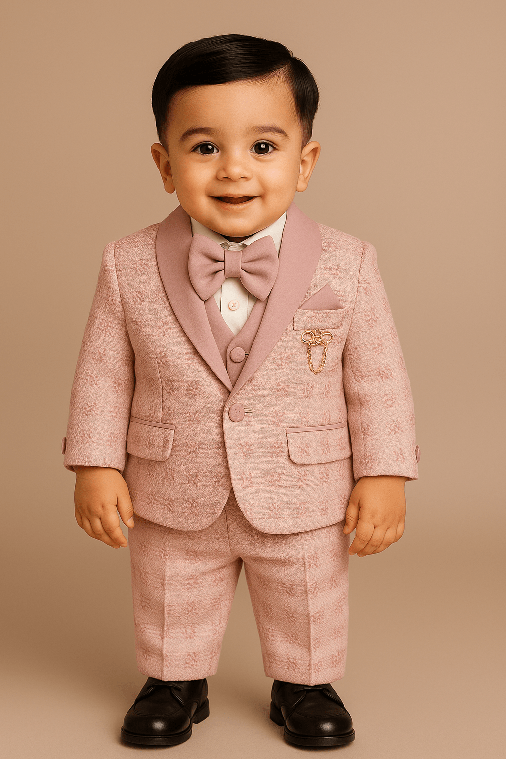 Make your little one stand out in style with this Boys’ Floral Embroidered Tuxedo Set, available in two gorgeous color options – Onion Peach and Cream. Crafted from soft yet durable fabric, this tuxedo features beautiful floral embroidery that adds a touch of charm and sophistication. Whether it’s a wedding, a family celebration, or a special occasion, this set will ensure your child looks dashing and feels comfortable all day long.